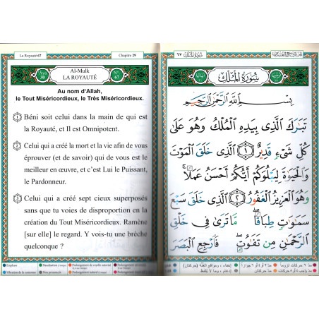 Mushaf Juzz’ Tabaraka en Arabe et son sens rapproché en Français