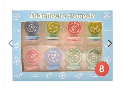 Breng een lach op het gezicht van kleine moslims met onze Islamitische Beloningsstempels! Deze set van 8 stempels bevat vrolijke ontwerpen en aanmoedigende berichten.