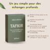 Plongez-vous dans un moment introspectif grâce à TAFKIR, un jeu conçu pour stimuler l’esprit et rapprocher les cœurs. Chaque partie offre une nouvelle opportunité d’explorer vos convictions, vos expériences et vos perspectives, tout en mettant Allah au centre de vos conversations.