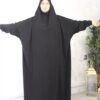 Jilbab Caviary 1 pièce El Bassira pour femme musulmane voilée avec jupe évasée. Disponible en taille t1/1m55-1m62 jusqu’à t4/1m75-1m83. Tissu opaque et épais, idéal pour toutes saisons.