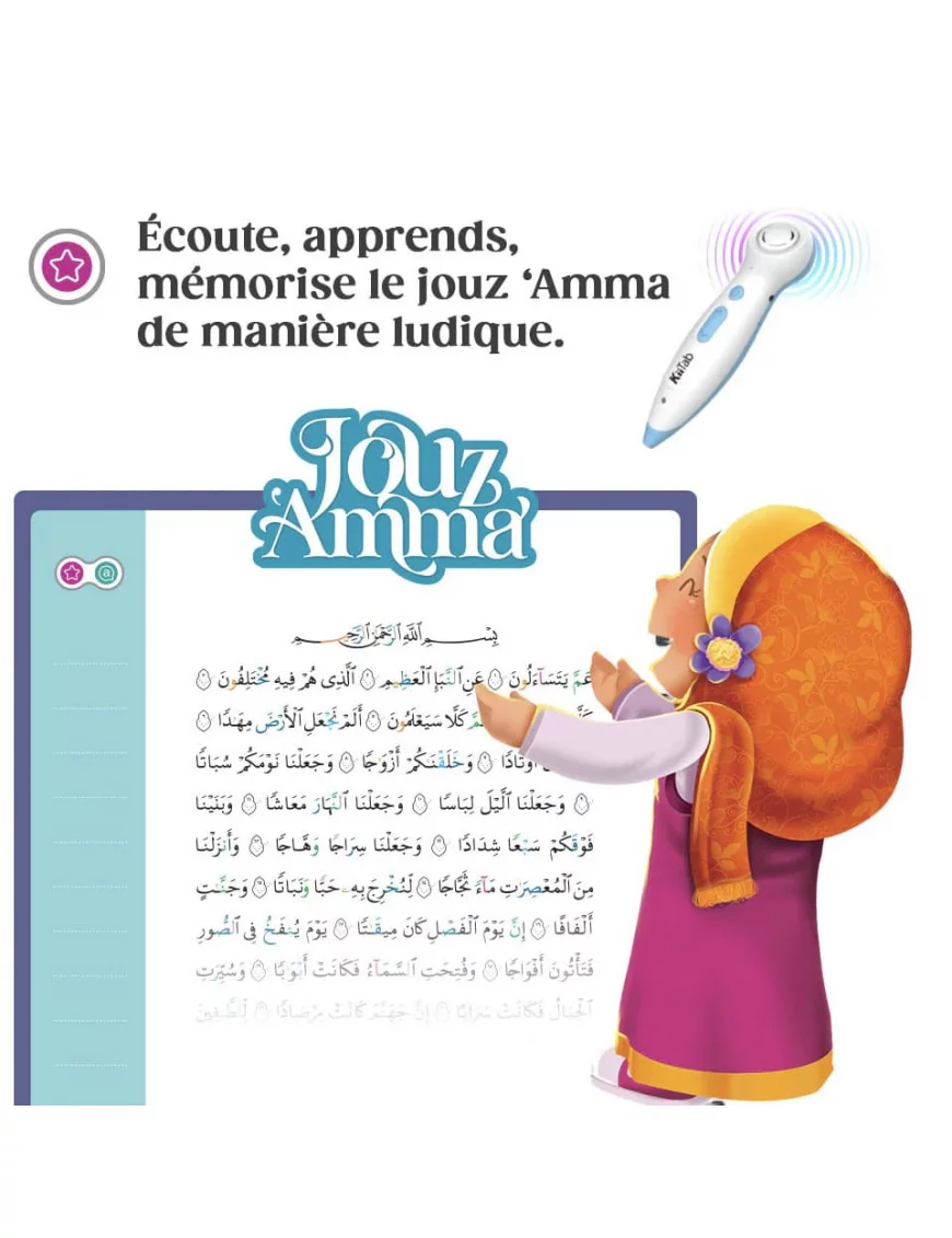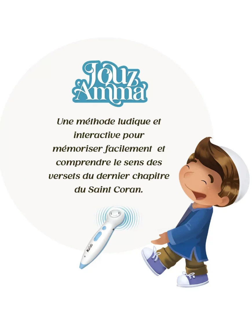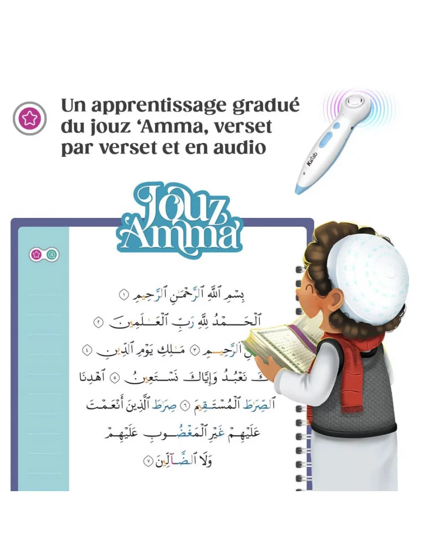 Le manuel interactif « Jouz Amma » est conçu pour aider les enfants et les adultes à progresser dans leur mémorisation et récitation du Coran. Grâce à ses fonctionnalités innovantes et son contenu pédagogique, ce livre rend l’apprentissage plus engageant et motivant.