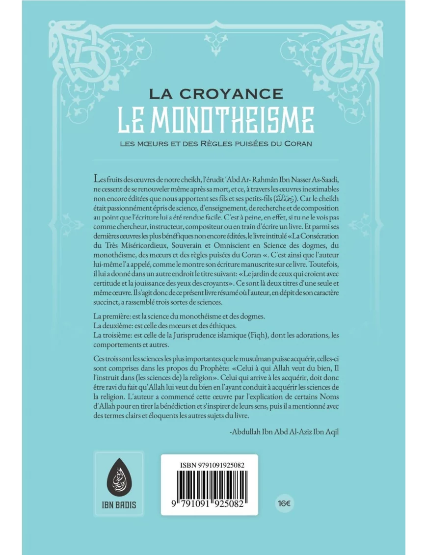 Et parmi ses dernières œuvres les plus bénéfiques non encore éditées, le livre intitulé « la Croyance, le Monothéisme, les mœurs et des règles puisées du Coran «