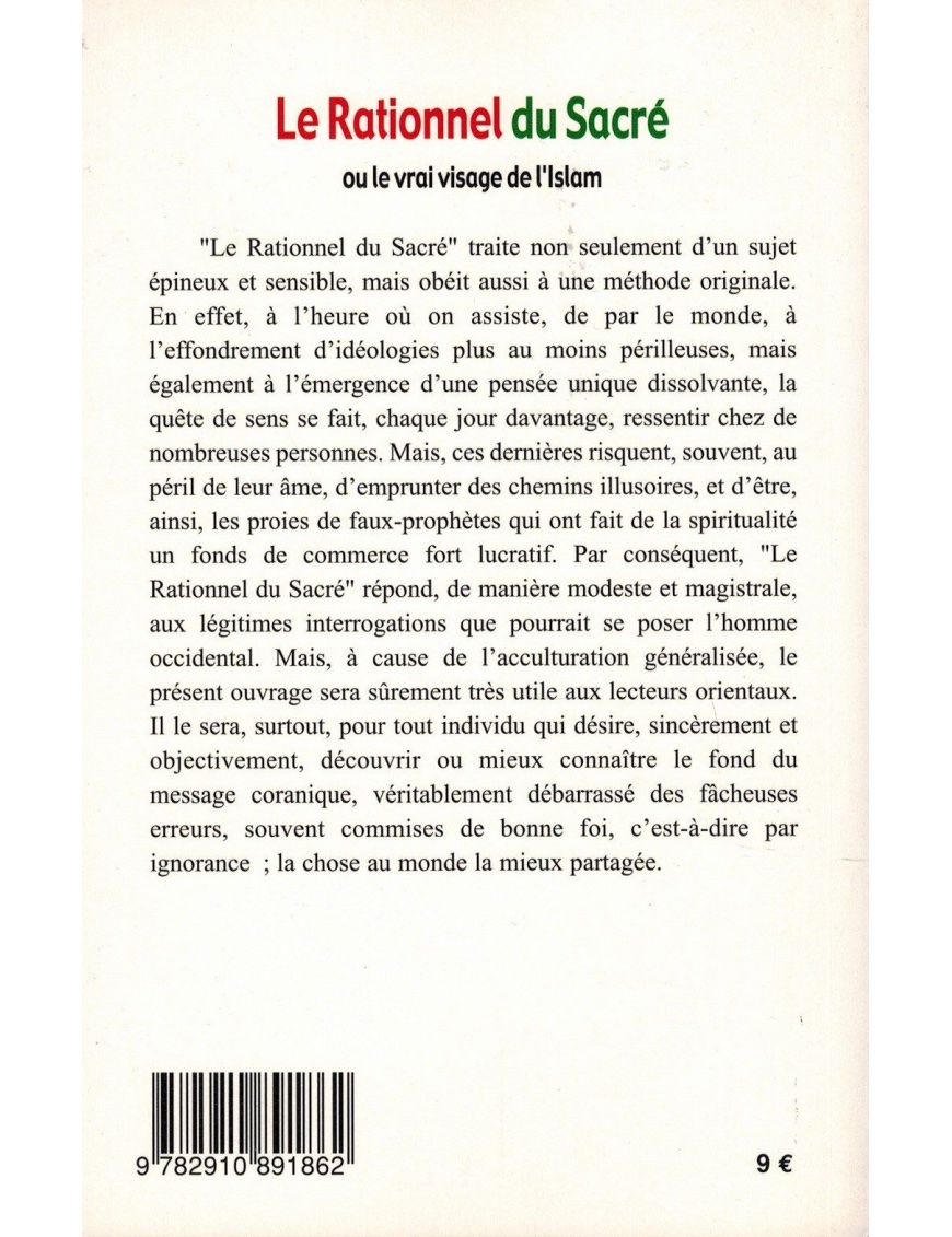 Mais, à cause de l’acculturation généralisée, le présent ouvrage sera sûrement très utile aux lecteurs orientaux. Il le sera, surtout, pour tout individu qui désire, sincèrement et objectivement, découvrir ou mieux connaître le fond du message coranique, véritablement débarrassé des fâcheuses erreurs, souvent commises de bonne foi, c’est-à-dire par ignorance ; la chose au monde la mieux partagée.