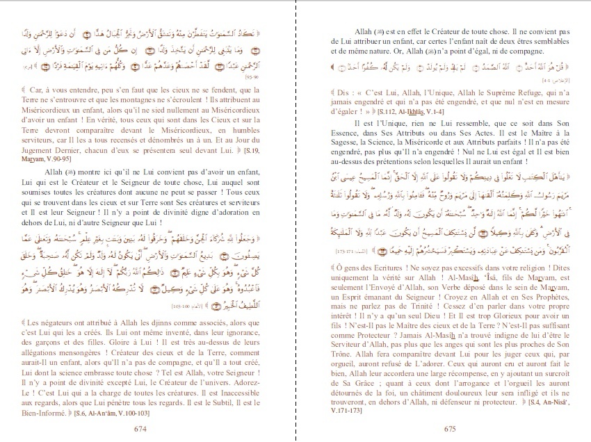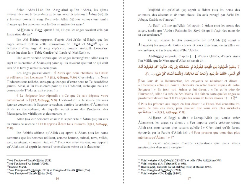 Dans cette édition très complète, une grande partie des versets coraniques et des hadiths sont également cités en langue arabe vocalisée.