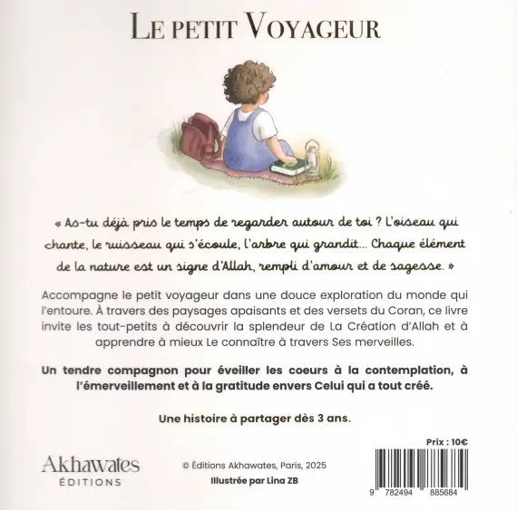 Accompagne le petit voyageur dans une douce exploration du monde qui l’entoure. À travers des paysages apaisants et des versets du quran, ce livre invite les tout-petits à découvrir la splendeur de La création d’Allah et à apprendre à mieux Le connaître à travers Ses merveilles.