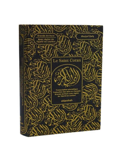 Ce nouveau Coran (complet avec 60 hizb) comporte un grand nombre d’options : La transcription phonétique est indiquée directement dans le texte arabe ; La traduction des sens en français est celle du Professeur Muhammad Hamidullah ; Le texte arabe contient les Règles de Tajwîd en couleur ; La vidéo accessible par code QR permet d’écouter et de suivre en même temps sur votre smart-phone ou tablette ; Toutes ces options permettent d’aider les apprenants et les débutants à lire plus facilement le Coran directement en langue arabe. Une très belle couverture de type cuir cartonnée et dorée.