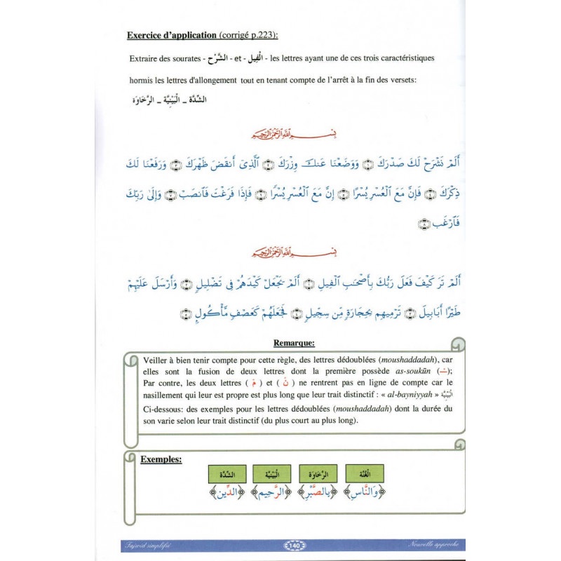 Le Coran, notre livre saint par excellence nous est parvenu de deux façons : par voie écrite d’une part et par voie orale d’autre part. Cette dernière qui nous importe, concerne la manière dont le Coran est récité dans ses moindres détails ; en effet les savants ont, de tout temps, mis l’accent sur l’importance de la bonne récitation de façon à ce qu’elle soit la plus conforme à celle de notre Prophète bien aimé. Pour cela, ils ont mis en place un système de règles des plus précis permettant d’atteindre facilement cet objectif. Ce manuel présente le tajwid selon une approche différente de ce que l’on trouve habituellement tout en étant conforme à l’enseignement du professeur l’érudit Dr Ayman Sweïd. De nombreux exemples et des remarques quant aux erreurs qui sont souvent commises lors de la lecture ainsi que des exercices d’entraînement dont les corrigés se trouvent à la fin de ce livre… Les thèmes traités dans ce livre : Les dix lecteurs et leurs rapporteurs Biographie de l’imam Hafs Chaîne de transmetteurs de l’auteur Mérites de l’apprentissage du Saint Coran Différents niveaux de lecture et statut juridique. Les règles de « alisti’âdhah » et « al-basmalah Statut concernant « alisti ‘âdhah » et « al-basmalah Manières d’enchaîner « alisti’âdhah » et « al-basmalah » Manières de réciter « al-basmalah » entre deux sourates Points d’articulation des lettres L’apprentissage du Saint Coran à l’aide de la phonétique. Certificat d’aptitude dans les dix lectures du Coran délivré à l’auteur.
