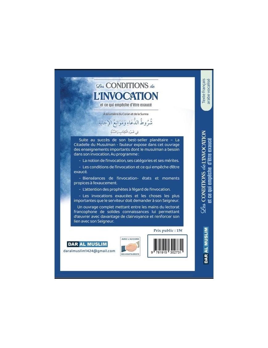 Suite au succès de son best-seller planétaire La Citadelle du Musulman, l’auteur expose dans cet ouvrage des enseignements importants dont le musulman a besoin dans son invocation. Au programme :