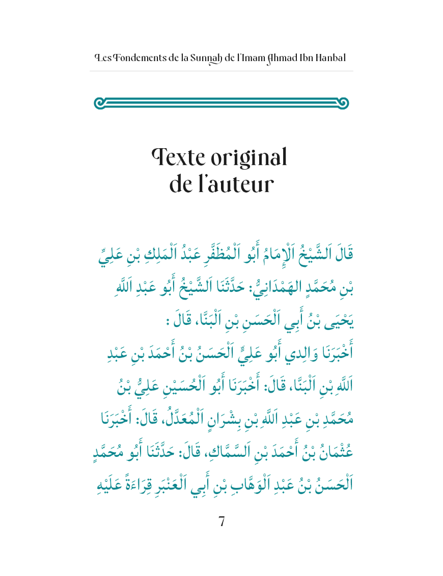 Dans ce livre, il dévoile les principes fondamentaux de la Sunna. Il insiste notamment sur la compréhension correcte de l’islam basée sur celle des salaf salih.
