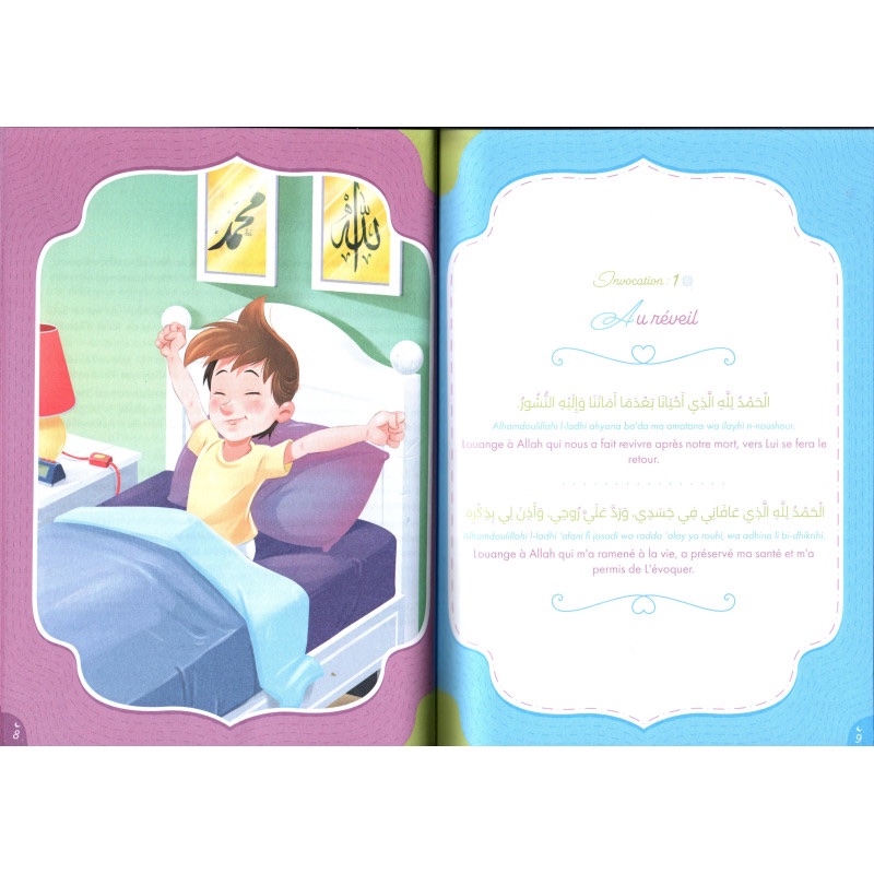 Chaque invocation est écrite en arabe, français et phonétique pour faciliter au mieux l’apprentissage.
