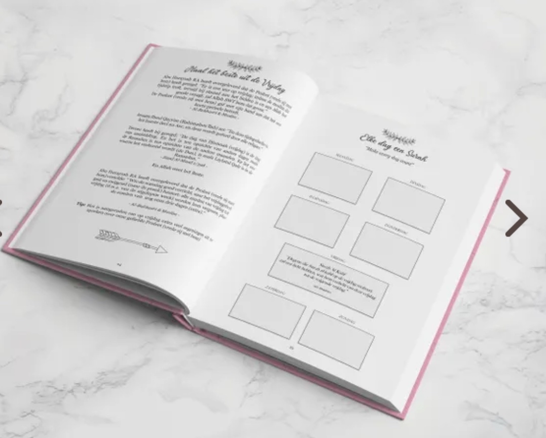 My Deen Planner bevat alles wat je nodig hebt om aan je imaan te werken. Door nauwkeurig je dag in te delen en jouw doelen op te schrijven leer je bewust om te gaan met je tijd. Je probeert jezelf als het ware een nieuwe levenswijze aan te leren, Je zult merken dat je niet heel veel hoeft te veranderen om meer aanbidding te kunnen verrichten. Het is vooral een kwestie van goed plannen. Deze geweldige planner zal je uitdagen tot meer aanbidding en maakt je bewust in jouw relatie met Allah. Het geeft een onwijs goed gevoel om aan het einde van de dag al je goals te hebben behaald, alsook te beseffen dat je langzaam aan een beter mens wordt.
