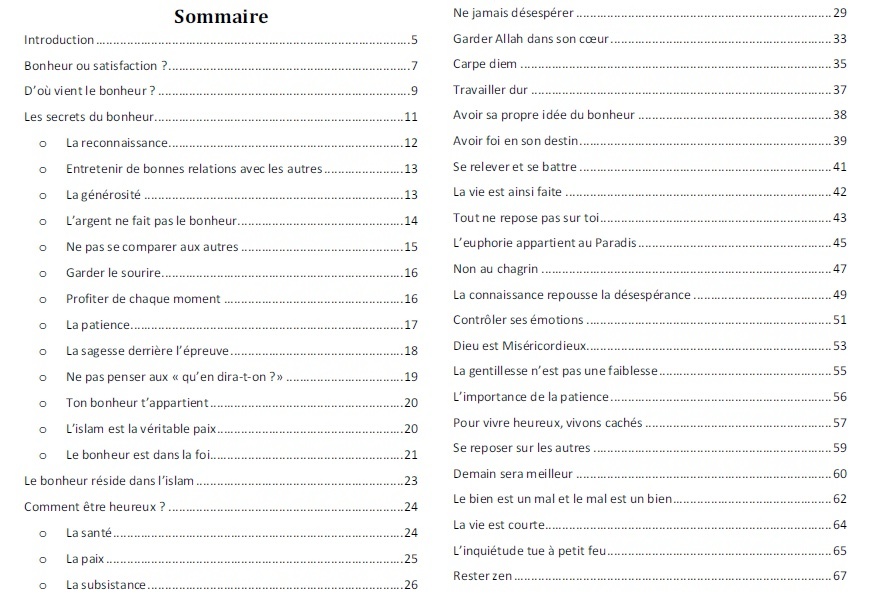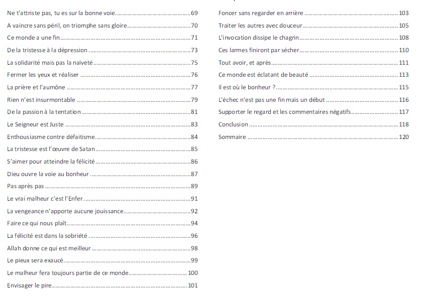 Enfin, pour les personnes qui lisent l’arabe, les versets coraniques ainsi que certains hadiths (et invocations) sont également citées en langue arabe vocalisée.