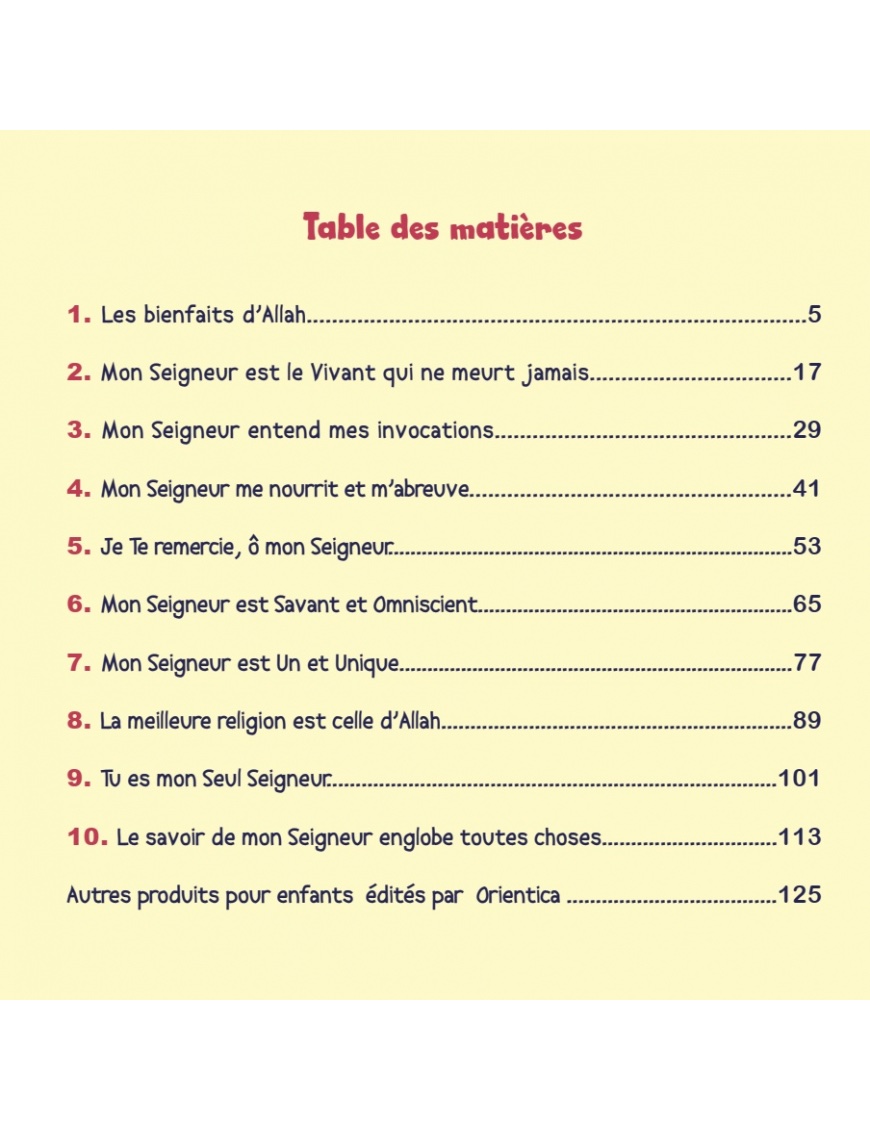 Un livre précieux regroupant 10 récits pour éveiller la foi, nourrir la réflexion et accompagner l’enfant dans sa découverte d’Allah, de Ses créations et de Ses bienfaits.