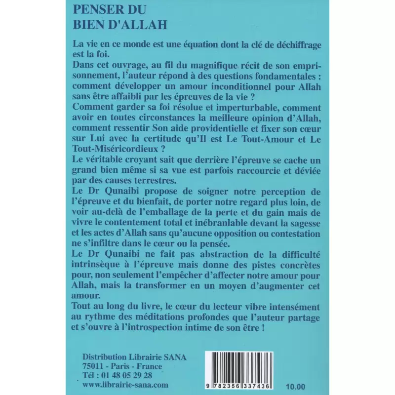 Dans cet ouvrage, à travers le magnifique récit de son emprisonnement, l’auteur répond à des questions fondamentales : comment développer un amour inconditionnel pour Allah sans être affaibli par les épreuves de la vie ? Comment garder une foi résolue et imperturbable ? Comment avoir en toutes circonstances la meilleure opinion d’Allah, ressentir Son aide providentielle et fixer son cœur sur Lui avec la certitude qu’Il est Le Tout-Amour et Le Tout-Miséricordieux ?