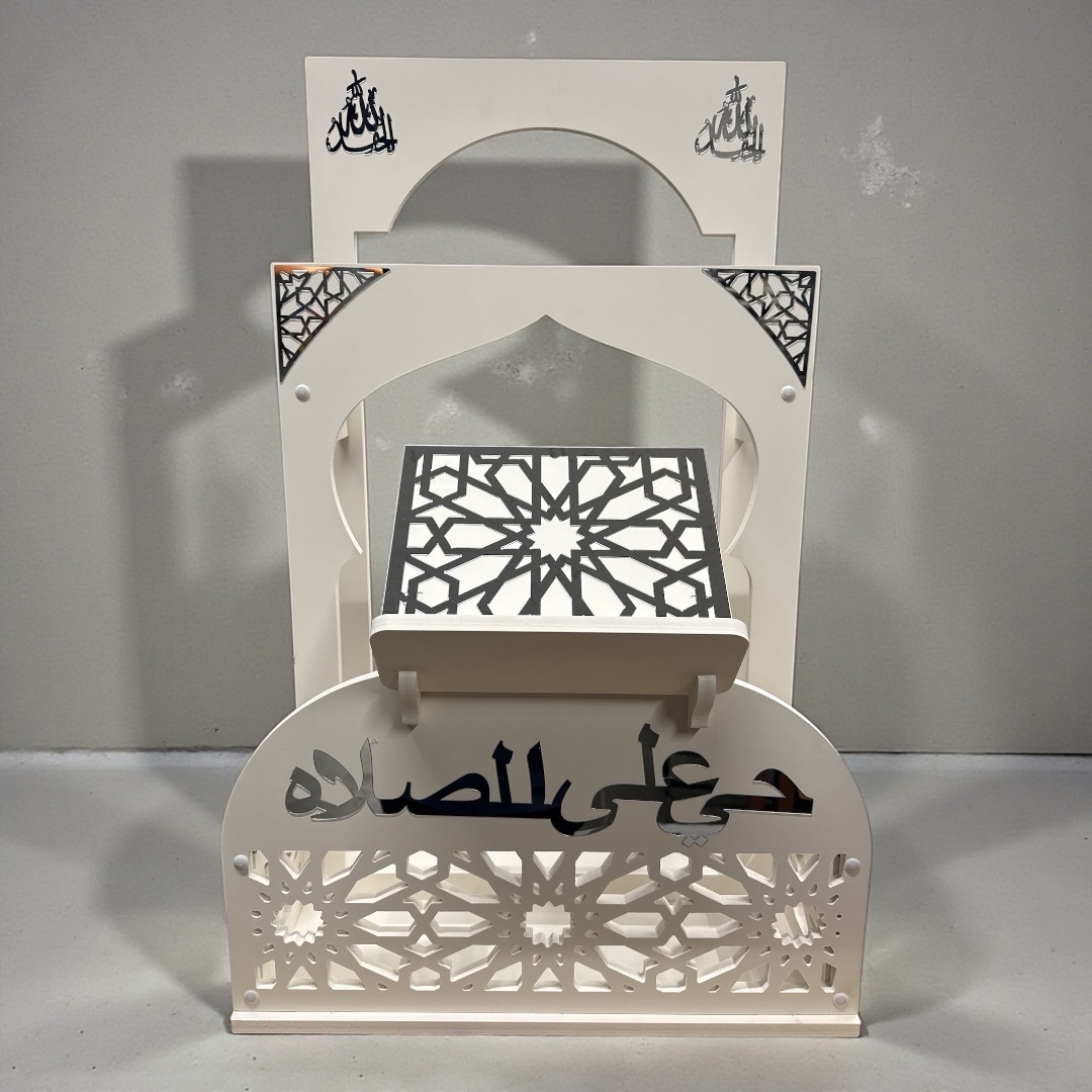 Porte coran et tapis blanc argenté