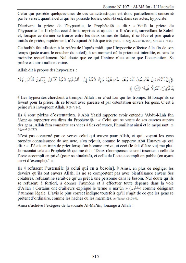 - Volume 3 (864 pages) : De sourate N° 33 : Al-Ahzâb – (Les Coalisés) à sourate N° 114 : An-Nâs (Les Hommes).