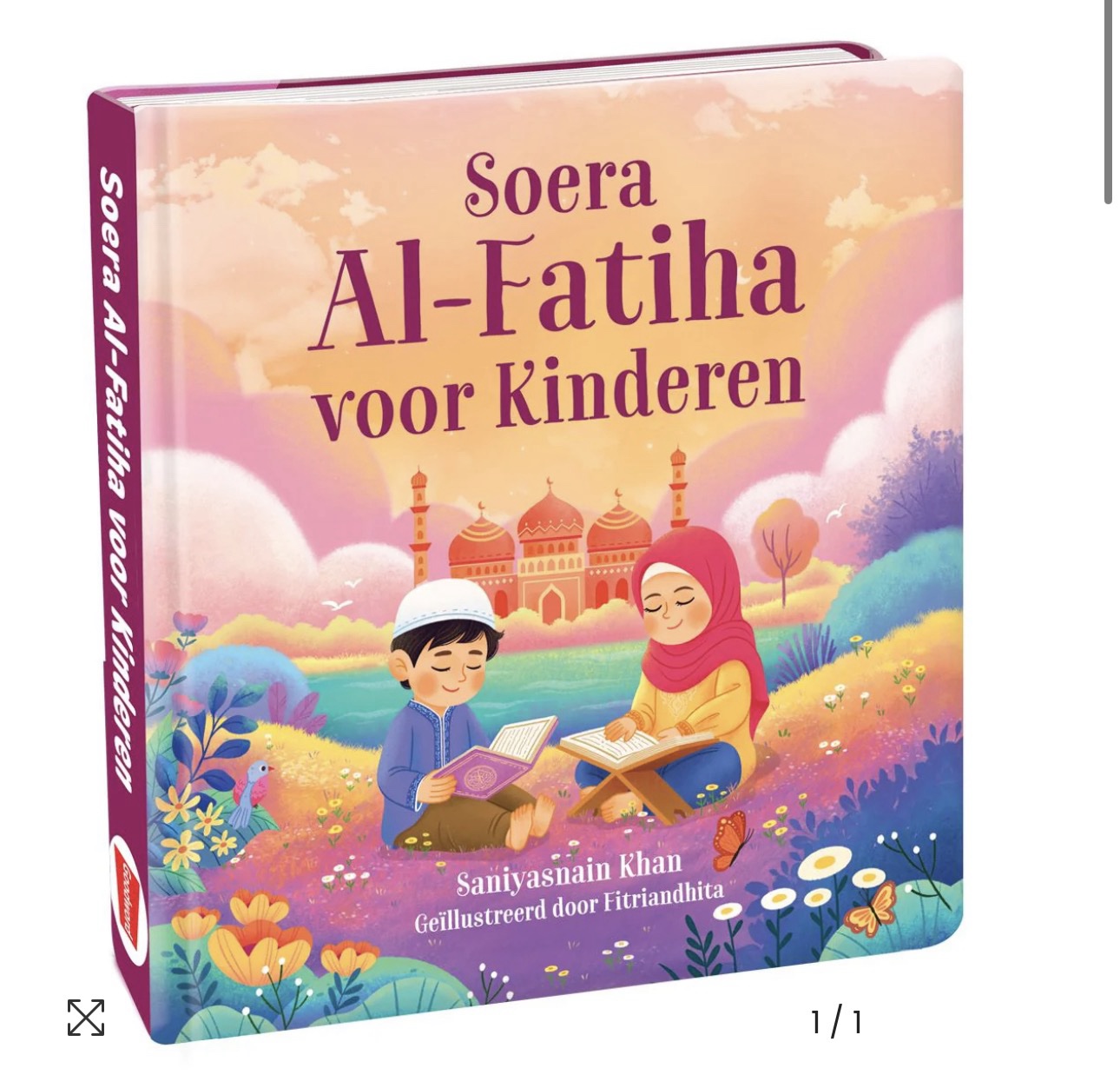 Beschrijving Over dit boek Soera Al-Fatiha voor Kinderen is een prachtig kartonboek dat jonge kinderen op speelse wijze laat kennismaken met de eerste en belangrijkste soera uit de Koran. Dit boek is speciaal ontworpen voor kinderen tot 7 jaar en maakt de betekenis van Al-Fatiha begripelijk en toegankelijk. Inhoud & opbouw Met behulp van korte, heldere rijmpjes en kleurrijke illustraties wordt elke vers uit Soera Al-Fatiha eenvoudig uitgelega. Kinderen leren niet alleen de woorden, maar ook de diepere betekenis op een liefdevolle en kindvriendelijke manier. Het boek stimuleert interactie tussen ouder en kind en maakt van leren een gedeeld moment. Educatieve waarde Soera Al-Fatiha is het hart van het gebed. Door op jonge leeftija deze soera te leren begripen, wordt de band met het gebed versterkt en groeit het kind op met een bewuste verbinding met de Koran. De rijmende teksten helpen bij het onthouden en zorgen voor een speelse leeservaring. Materiaal & kwaliteit Het boek is uitgevoerd in stevig karton met afgeronde hoeken, speciaal ontworpen voor kleine kinderhanden. De afmetingen zijn 18,5 x 18,5 cm, wat het boek compact en handig maakt voor dagelijks gebruik. De hardcover zorgt voor extra duurzaamheid en bescherming. Waarom kiezen voor dit boek? Islamitisch kinderboek over…