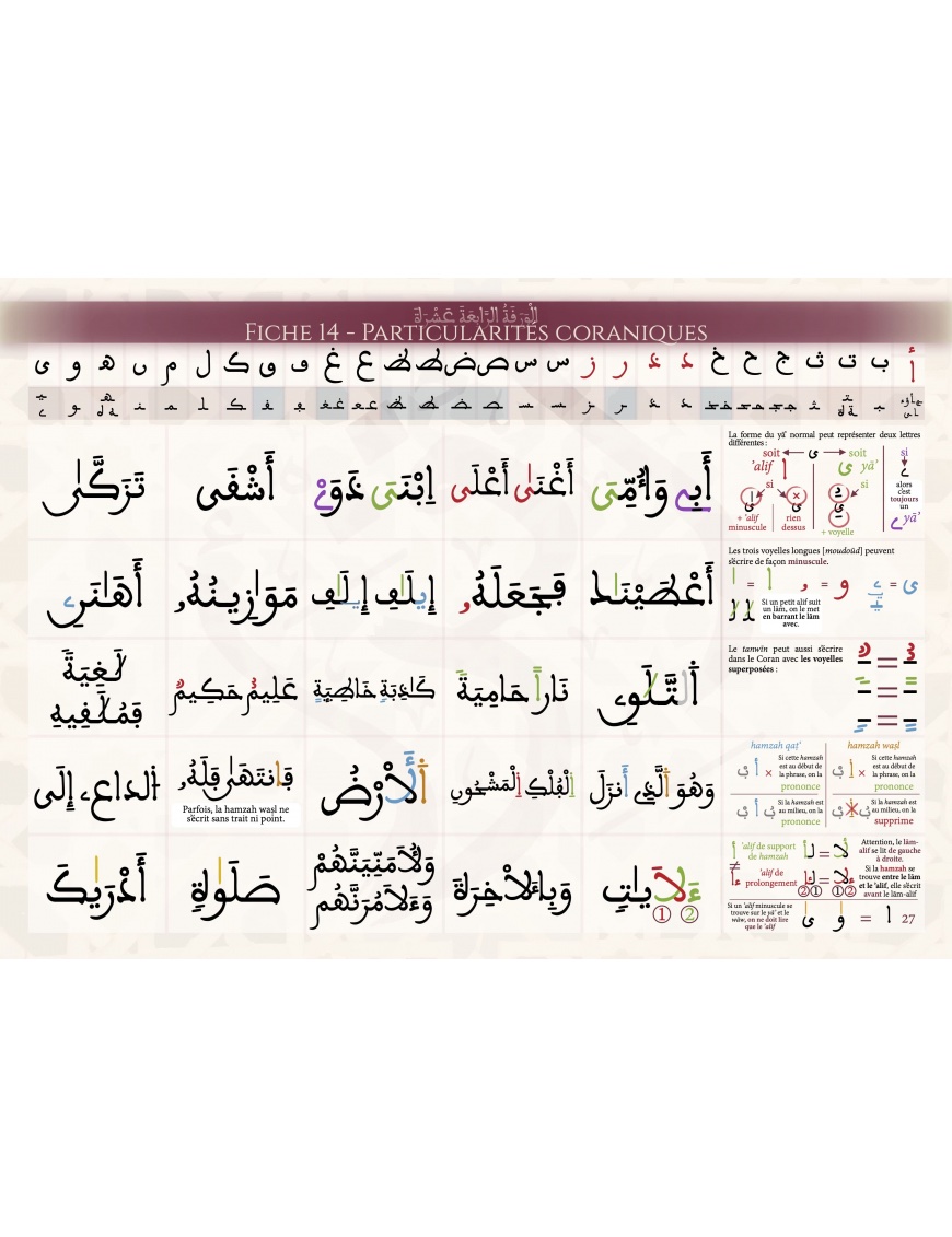 Cette méthode se distingue par son utilisation de la calligraphie & orthographe maghrébines avec notamment ses fiches 14 et 15 adaptées aux spécificités du ḍabṭ [écriture] coranique. Ainsi, dès les premières leçons, l’apprenant établit les bases nécessaires pour aborder le muṣḥaf (support coranique) dans un style calligraphique qui crée un lien naturel et fluide entre l’apprentissage initial de la lecture et l’accès au Saint Coran.