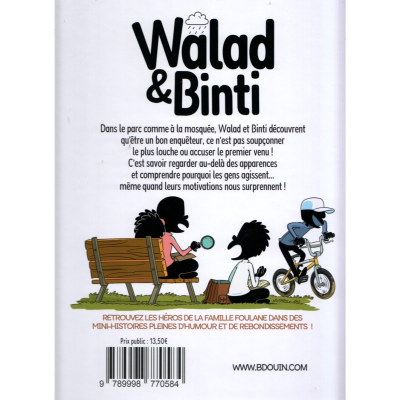 Dans ce troisième tome, Walad et Binti se retrouvent au cœur de situations confuses, au parc comme à la mosquée. Entre malentendus et fausses pistes, ils découvrent qu’un vrai héros n’accuse pas au hasard : il observe, réfléchit et cherche les intentions cachées derrière chaque action.